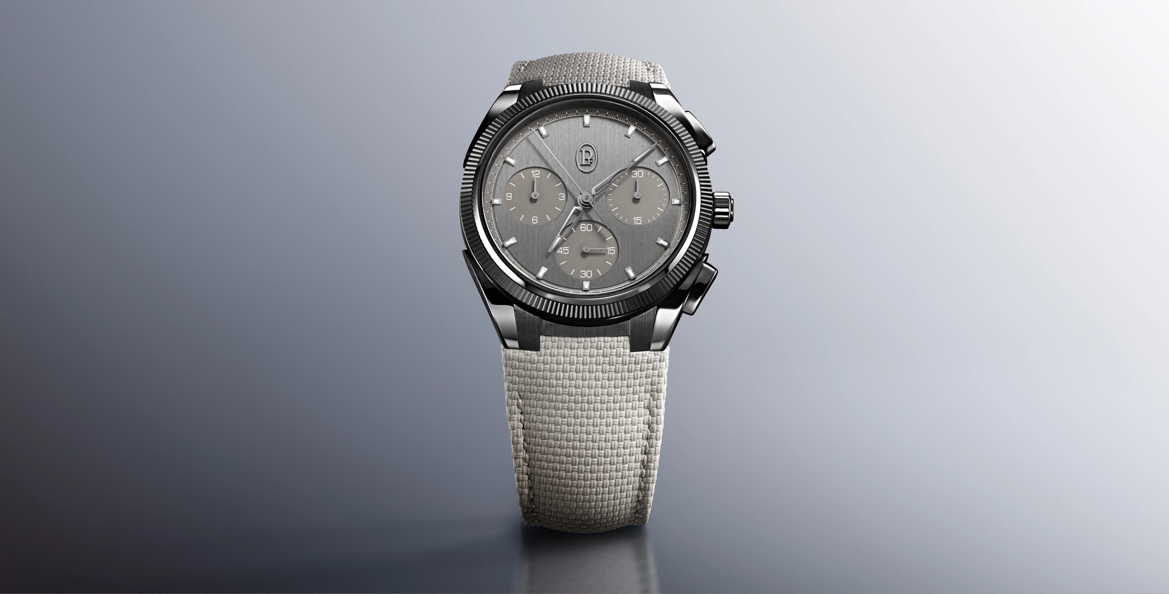 The timer flange and counters are color-matched. The knurled bezel is a Parmigiani Fleurier signature, but the notches are more pronounced here than in the regular collection. The bracelet also works in the sartorial spirit dear to the brand: its sophisticated texture is given a textile-like rendering, finished with a seam similar to those that the artisan-saddler uses when working with leather.